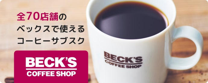| ベックスコーヒープラン | 3,500円 ※初回1,000円割引 | ベックスコーヒーショップ 全70店舗 ※ステーションラウンジを除く | 来店ごとにブレンドコーヒーSサイズ1杯・HOT/ICE(通常250円)を1日3回まで無料で提供 |