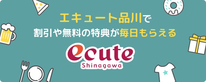 | エキュート品川 EVERYDAY PLAN | 300円 | エキュート品川 (参加店舗数:14ショップ) ※参加店舗数は変更の可能性有り | プランへ参加している店舗で画面を提示していただくと、店舗ごとにドリンク無料や割引など、様々な特典を受けることができます |