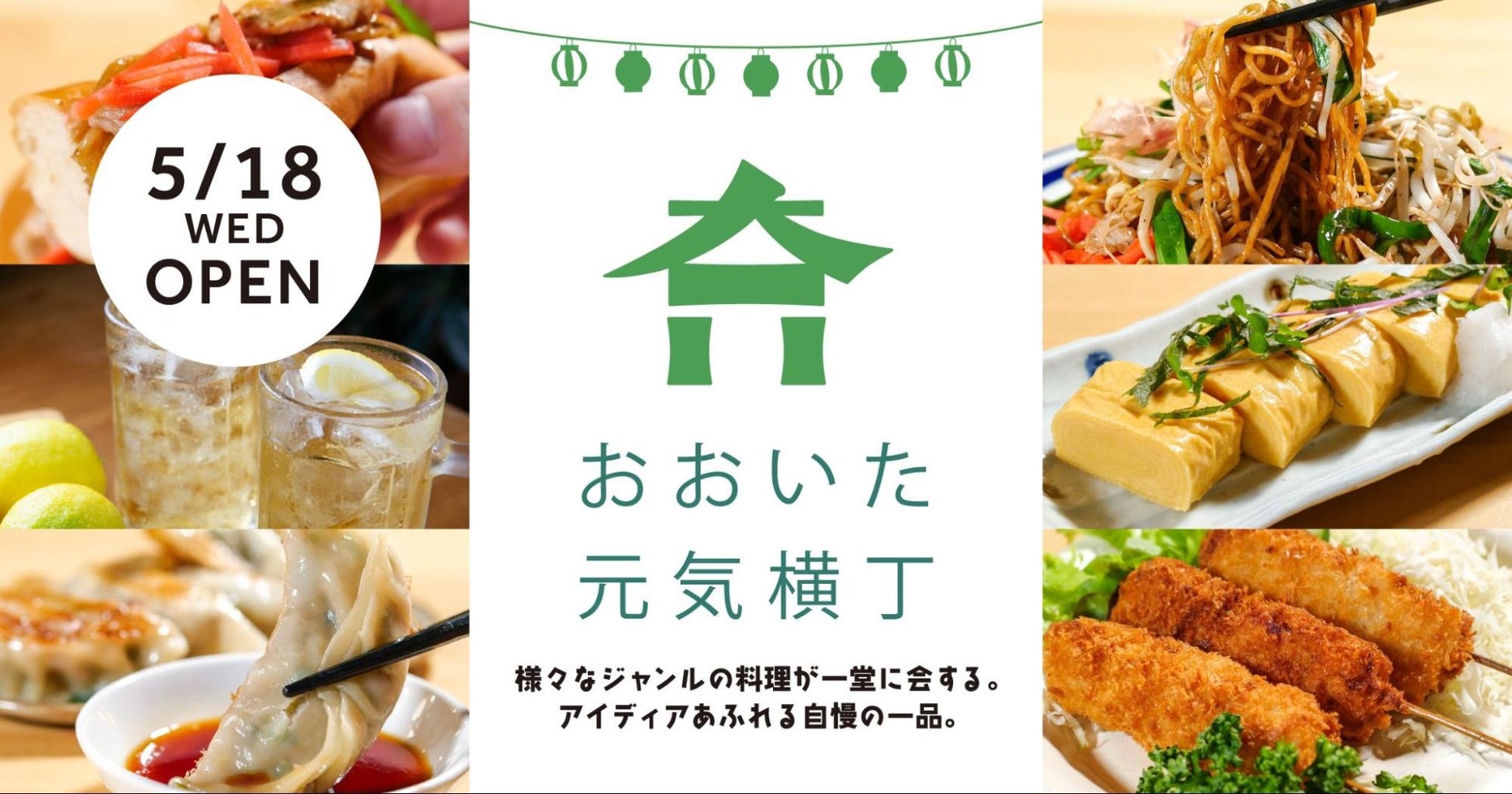 おおいた元気横丁は、コロナ禍で一度閉業してしまった施設です。店名は以前のままですが、地産地消の取り組みを行い、大分県を盛り上げるグルメスポットとして、新たに生まれ変わります。