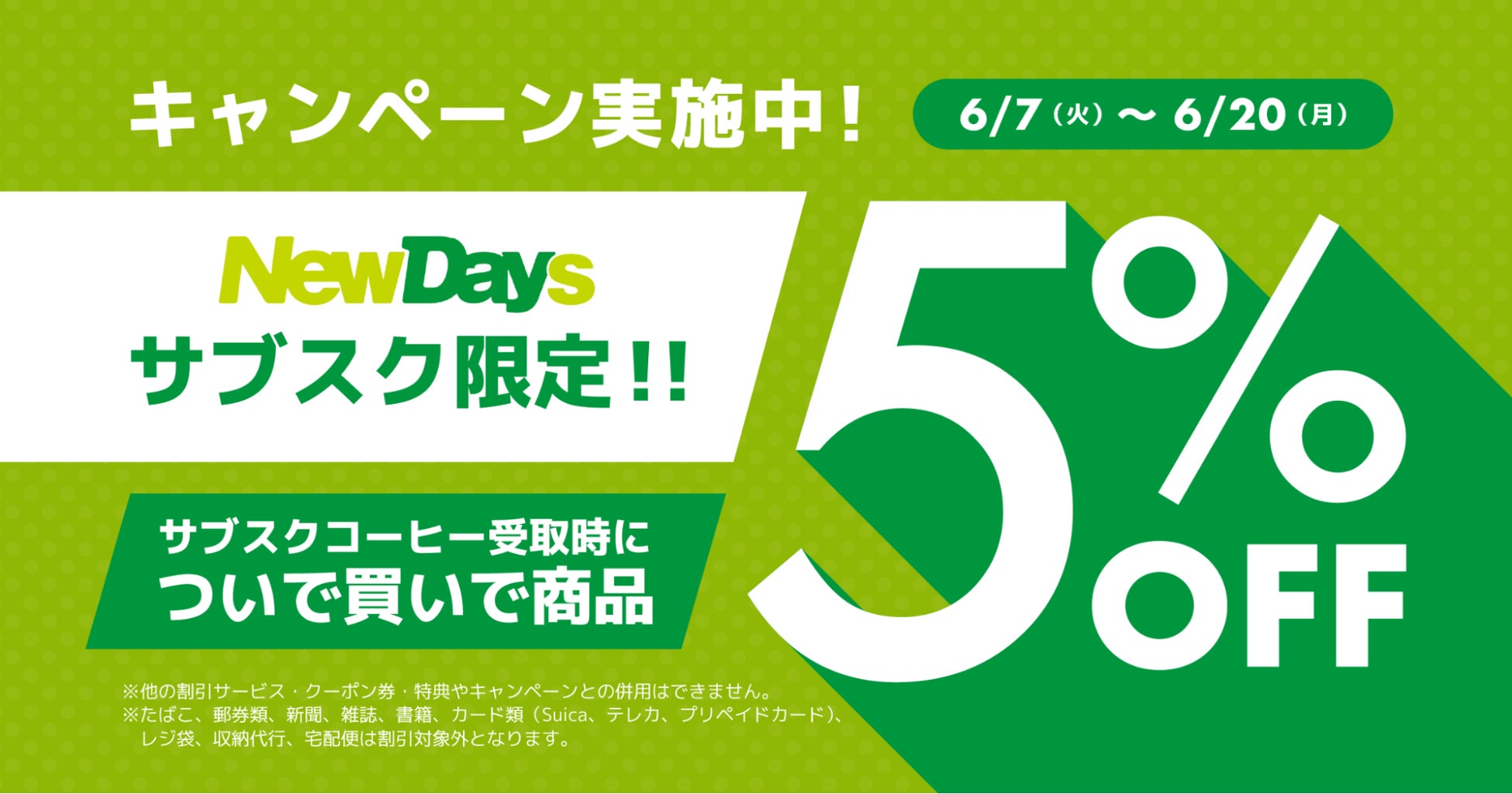 NewDaysサブスク利用回数10,000杯突破!サブスク利用者向けに「ついで買い5%オフ」キャンペーンを6/7〜6/20の期間限定で実施