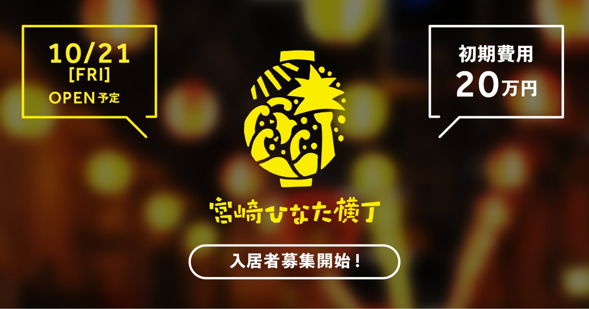 横丁内の10区画に入居する店舗を募集中です。現在、イタリアン、創作和食、鉄板焼き、スイーツ等バラエティに富んだ業態のシェフや飲食人から応募のご連絡をいただいております。初期費用は20万円で出店が可能です。宮崎県を外食で盛り上げたいシェフ・料理人からのご応募をお待ちしております。