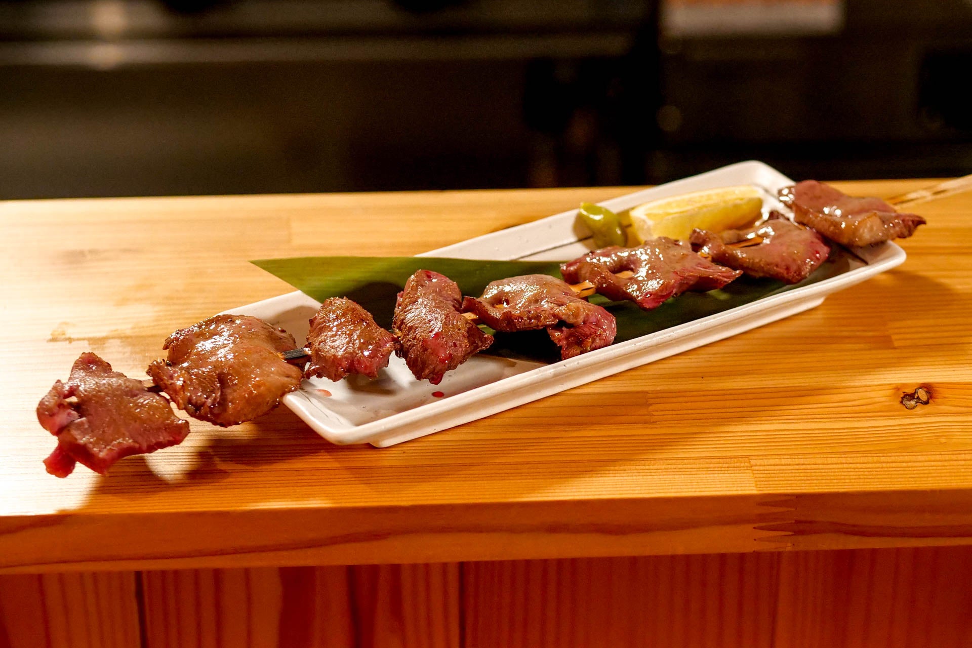 こだわりの牛タンを一つひとつ丁寧に串に刺し、じっくりと焼き上げています。