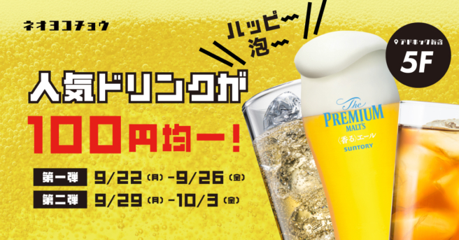 《ビールもハイボールも!「人気ドリンク100円泡一」キャンペーン詳細》
