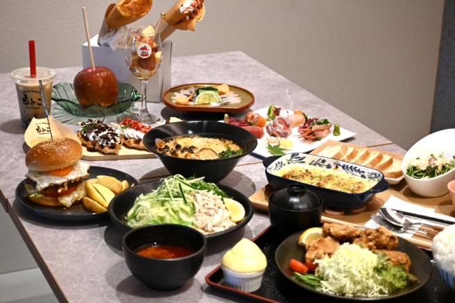 客席からモバイルオーダーを利用することで、各店舗のお好きなメニューを自由に組み合わせてお召し上がりいただけます。