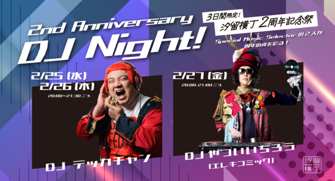 2月に2周年記念イベントを開催するにあたり、これまでに開催したキャンペーンの中で、特に人気のあった「100円ビール」・「100円ハイボール」と、「抽選キャンペーン」・「DJイベント」を、2つずつセットで開催することにいたしました。