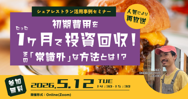 そうお考えの飲食店経営者の方に向けて、低コストで出店し、短期間での投資回収を実現した事例をご紹介するセミナーを開催いたします。