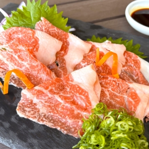 低温調理されたジューシーなお肉は、そのままお好みの大きさにカットして召し上がっていただくか、テーブルに提供される鉄板に乗せて、お好みの焼き加減でもお楽しみいただけます。