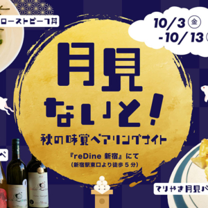 2025年10月3日(金)〜10月13日(月・祝)、『reDine 新宿』で「月見ないと!」を開催いたします。10月6日の中秋の名月に合わせたお月見メニューを11日間の期間限定でご用意。なくなり次第終 …