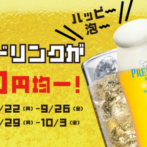 【ネオヨコチョウ】9/22~期間限定でビール・ハイボールなどを100円均一で提供